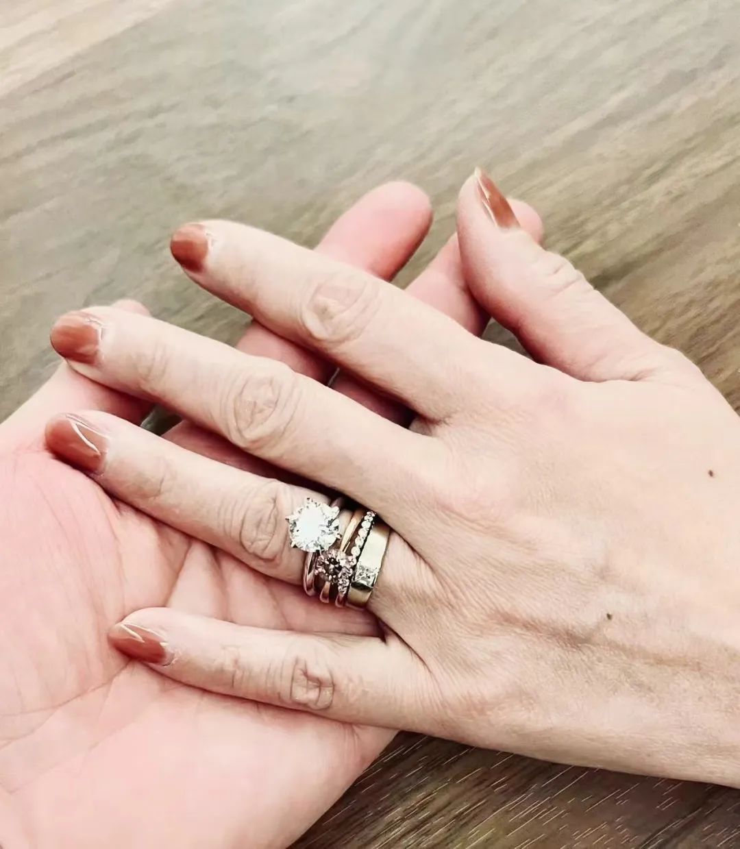 这是她在婚姻中收到的第三枚钻戒。“从结婚到银婚,三枚由小变大的钻戒……在它们的见证下,爱逐渐积累、成长”,Joanne有感而发。