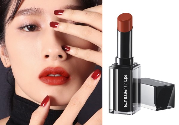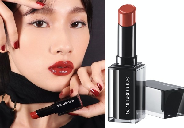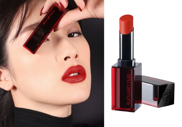 植村秀携手渡边直美展现“BR784巨美棕红”,更推出全新红黑色限定包装。