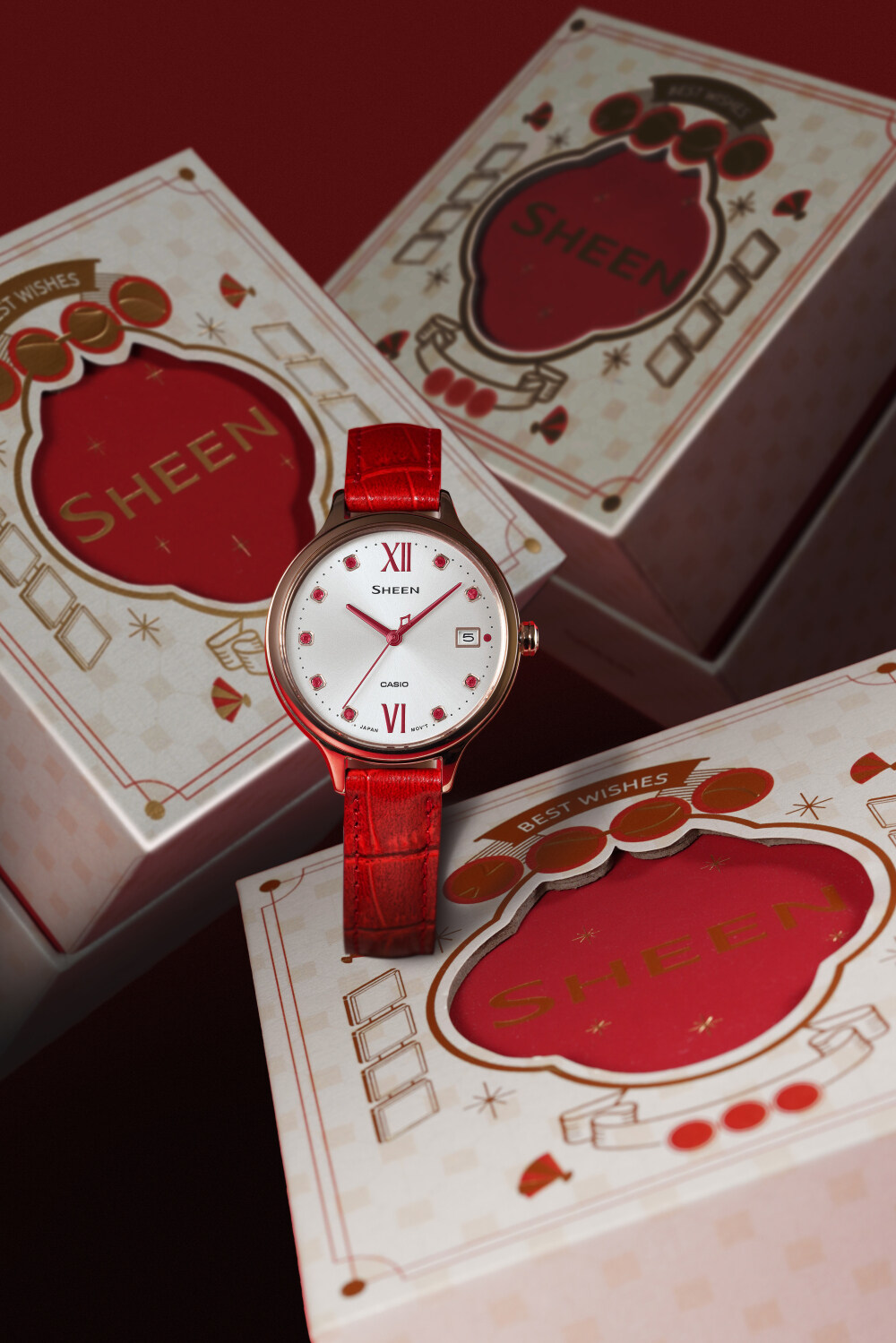 新年,是中式美学与美好祈愿的集合。而红色,则是新年的颜色。红色永远充满热情、无所畏惧,也因此更能释放出你我内心的能量。SHEEN捕捉这一抹色彩,为都市女性所带来“璀璨SHEEN光”系列三款新年主题腕表,将无限好运与祝福尽收腕间,并以精巧款式与优雅造型成就时间艺术!