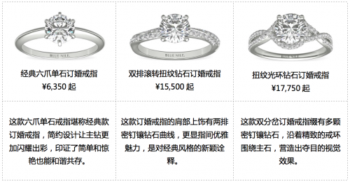 Blue Nile天猫旗舰店也于2015年正式上线,消费者可以便捷购买从美国西雅图直邮的钻戒和各类珠宝首饰。