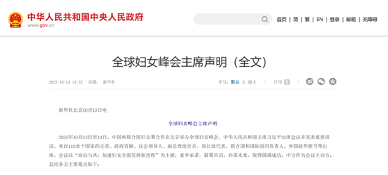 10月13日至14日,全球妇女峰会在北京举行,会议以“命运与共:加速妇女全面发展新进程”为主题,呼吁国际社会共同培育推动妇女事业高质量发展的强劲动能,推动妇女全面发展,积极促进妇女减贫、教育、健康、就业和社会保障,推动妇女平等参与各级决策和管理,不断提升妇女的获得感、幸福感、安全感。