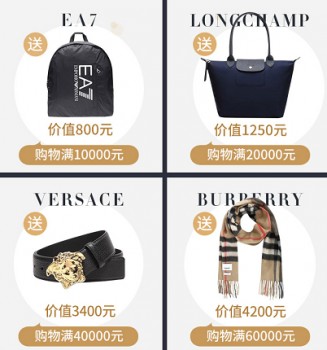 没有套路,没有门槛,珍品网双十一就要简单又粗暴。一边是海量优惠爆品任选,一边是好礼好利送不停,这一套组合拳下,可以说今年双十一是珍宝们入手的好时机。今年双十一购物满1万送EA7双肩包,购物满2万Longchamp手提单肩包,购物满4万送Versace腰带,购物满6万送Burberry围巾!