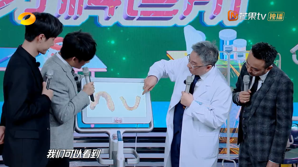 天天兄弟汪涵、钱枫、大张伟、王一博四人更是白大褂加身,变身"实习牙医团与几位牙医就"早餐前还是早餐后刷牙"、"牙齿矫正的黄金时间"、"槟榔是否引发口腔癌"、"美白牙贴有没有用"等大众关心的口腔问题进行了专业回答,解答了大家的疑惑。